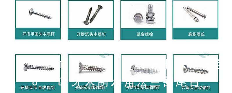(铁板牙自攻螺丝) B-2: Plastic Tapping Screw. (塑胶用,自攻螺丝) C: Wooden Screw : 木工螺丝 D: Drywall Screw :水泥墙螺丝 E: Self Drilling Screws钻尾螺丝(不锈钢钻尾螺丝,复合材料钻尾螺丝) F:膨胀螺丝,四片膨胀螺丝又 螺栓顶部标识的4.8是螺栓强度等级,4.8级的一般用A3钢。性能等级4.8级的螺栓,其含义是:1、螺栓材质公称抗拉强度达400MPa级;2、螺栓材质的屈强比值为0.8;3、螺栓材质的公称屈服强度达400×0.8=320MPa。螺栓性能