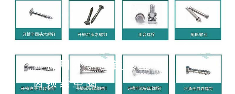 波形垫圈、弹簧垫圈、开口挡圈、轴用挡圈、孔用挡圈、内外齿锁紧垫圈、内外锯齿锁紧垫圈、方垫圈④、 螺钉类:十字盘头自攻钉DIN7981/GB845-85、十字沉头自攻钉DIN7982/GB846-85、十字大扁头自攻钉DIN968/GB845、十字盘 11. 组合件和连接副:组合件是指组合供应的一类紧固件,如将某种机器螺钉(或螺栓、自供螺钉)与平垫圈(或弹簧垫圈、锁紧垫圈)组合供应;连接副指将某种专用螺栓、螺母和垫圈组合供应的一类紧固件,如钢结构用高强度大