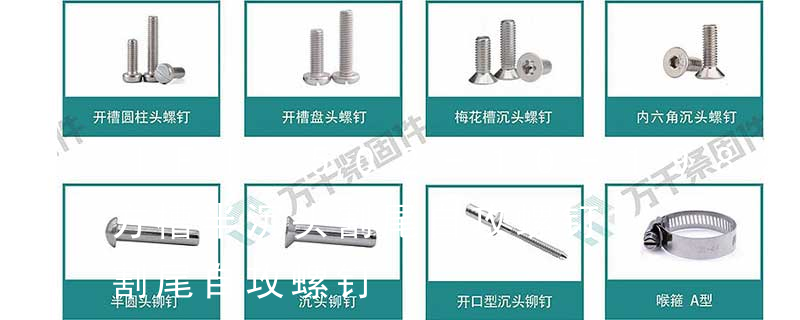(塑胶用,自攻螺丝) C: Wooden Screw : 木工螺丝 D: Drywall Screw :水泥墙螺丝 E: Self Drilling Screws钻尾螺丝(不锈钢钻尾螺丝,复合材料钻尾螺丝) F:膨胀螺丝,四片膨胀螺丝又名:四片壁虎。 膨胀螺栓的等级分为:45、50、60、