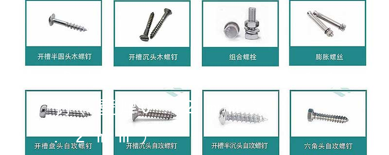 最常见的是六角头螺栓 国标GB5783 GB5782 德标Din933 Din931 (8.8级粗牙外六角螺栓)圆柱头内六角螺钉 国标GB70.1 德标Din912 还有很多像什么盘头十字螺钉 沉头十字螺钉 开槽盘头螺钉 开槽沉头螺钉等等很多种。螺母的种