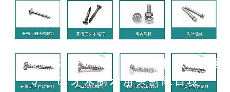 主要分类包括普通螺丝、机螺丝、自攻螺丝和膨胀螺丝三种。有头螺钉Cap screw 过去限于全牙的扣件。六角头螺钉Hex cap screw与大六角螺栓Hex bolt 顾名思义为头部为六角型的外螺纹扣件,设计为使用扳手转动。依照ASME B18.2. ◆大扁头割尾自攻螺丝TT◆薄头自攻螺丝CA◆薄头平尾自攻螺丝CB◆杯头内六角自攻HA◆干壁钉/墙板钉/纤维钉机丝类:::◆圆头机牙螺丝PM◆圆头带介机牙螺丝PWM◆大扁头机牙螺丝TM◆沉头机牙螺丝KM◆半沉头机牙螺丝OM◆大头机牙